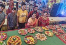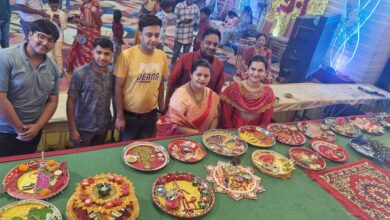 मां महामाया दुर्गा उत्सव समिति सक्ती में आरती थाल सजाओ प्रतियोगिता आयोजित