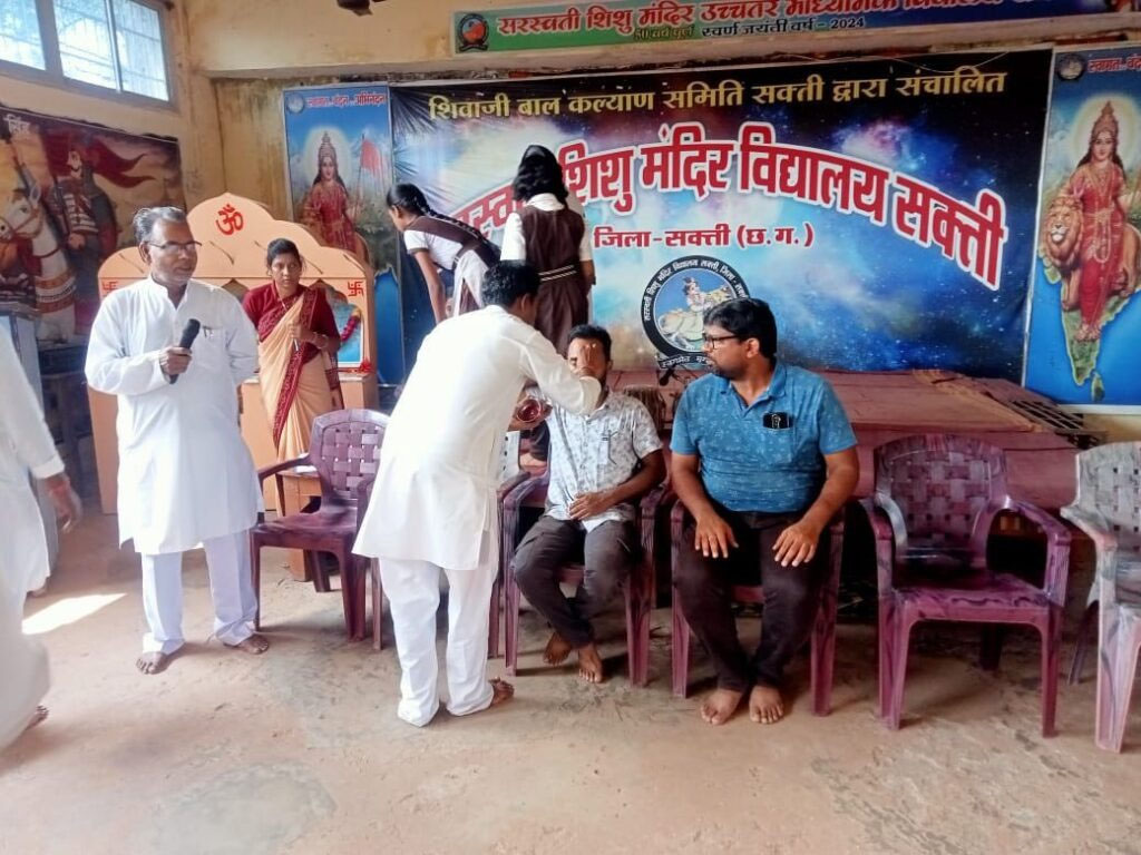 सकती. शक्ति शहर के सरस्वती शिशु मंदिर उच्चतर माध्यमिक विद्यालय में विगत ग्यारह शनिवारो से निरंतर भारत माता की आरती का भव्य किया जा रहा है,इसी श्रृंखला में 19 अक्टूबर को शनिवार के दिन आरती का कार्यक्रम आयोजित किया गया, इस कार्यक्रम के मुख्य अतिथि विद्यालय के पूर्व छात्र टंकेश्वर देवांगन एवं शक्ति के खेतान सेल्स एंड सर्विस के संचालक आशीष खेतान प्रमुख रूप से मौजूद थे, इस दौरान कार्यक्रम में जहां भारत माता के तेल चित्र पर तिलक लगाकर एवं दीप प्रज्वलन कर आरती की गई तो वही इस कार्यक्रम में विद्यालय परिवार के सदस्य एवं विद्यार्थी मौजूद रहे.