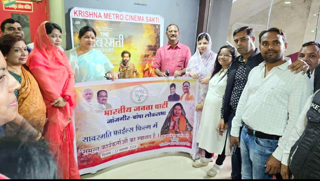 सांसद कमलेश जांगड़े ने भाजपा नेताओं एवं कार्यकर्ताओं के साथ शक्ति के मेट्रो सिनेमा में देखी साबरमती रिपोर्ट मूवी,कमलेश जांगड़े ने कहा- गोधरा कांड के सच को लोगों तक पहुंचा रही है यह मूवी, जिले भर के पहुंचे सैकड़ो भाजपा कार्यकर्ता