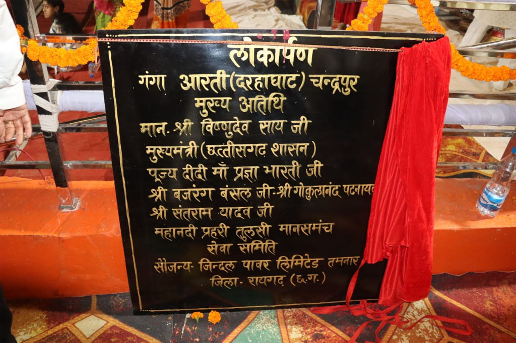रायपुर/सक्ती/चंद्रपुर। मुख्यमंत्री श्री विष्णु देव साय सक्ती जिले के चंद्रपुर में महानदी के दरहाघाट तट पर आयोजित मां महानंदा चित्रोत्पला गंगा महानदी महाआरती महोत्सव-2024 में शामिल हुए। उन्होंने इस अवसर पर सीएसआर मद से निर्मित गंगा आरती दरहाघाट का लोकार्पण किया। महाआरती में मातृशक्ति महिलाओं सहित बड़ी संख्या में श्रद्धालु उत्साहपूर्वक शामिल हुए।