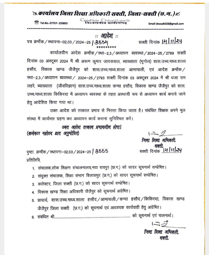 ‘सक्ती टॉप न्यूज’ में प्रकाशित खबर का असर : जिला शिक्षा अधिकारी ने जारी किया फरमान, छात्राओं के चेहरे पर बिखरी मुस्कान