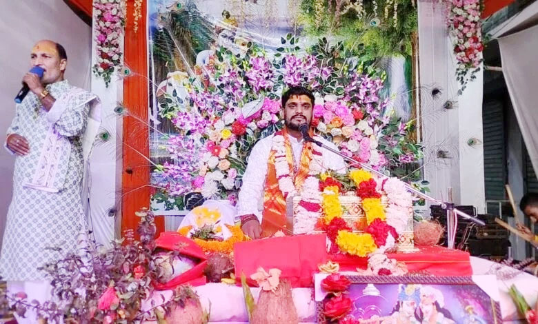 कथावाचक कथा कृष्णा तिवारी के श्री राम कृष्ण जन्म की कथा सुन भाव विभोर हुए श्रद्धालु, पूरा पंडाल राम कृष्ण जयकारों से गूंजा