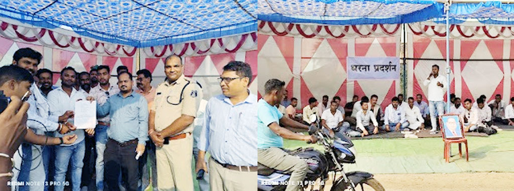 सामुदायिक स्वास्थ्य केन्द्र मालखरौदा में 31 अक्टूबर को हुए नवजात शिशु की मौत को लेकर मिशन चौक में किया गया धरना प्रदर्शन