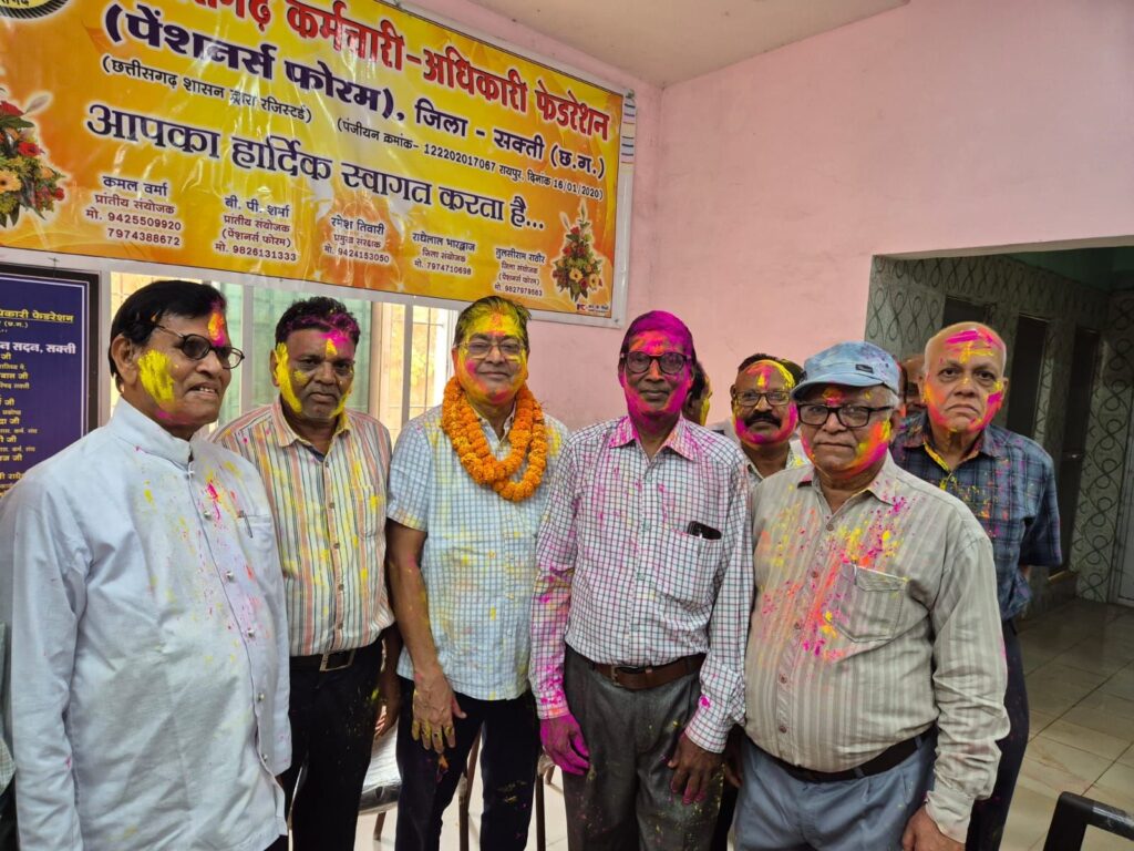 सक्ती:- नगर पालिका अध्यक्ष श्याम सुंदर अग्रवाल ने आज छत्तीसगढ़ अधिकारी कर्मचारी पेंशनर संघ सक्ती एवं देवांगन समाज सक्ती के साथ होली मिलन समारोह बड़े ही हर्षोल्लास और उत्साह के साथ मनाया। इस अवसर पर सभी ने एक-दूसरे को गुलाल लगाकर होली की शुभकामनाएं दीं और आपसी प्रेम व भाईचारे का संदेश दिया।