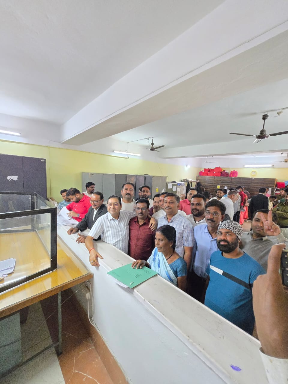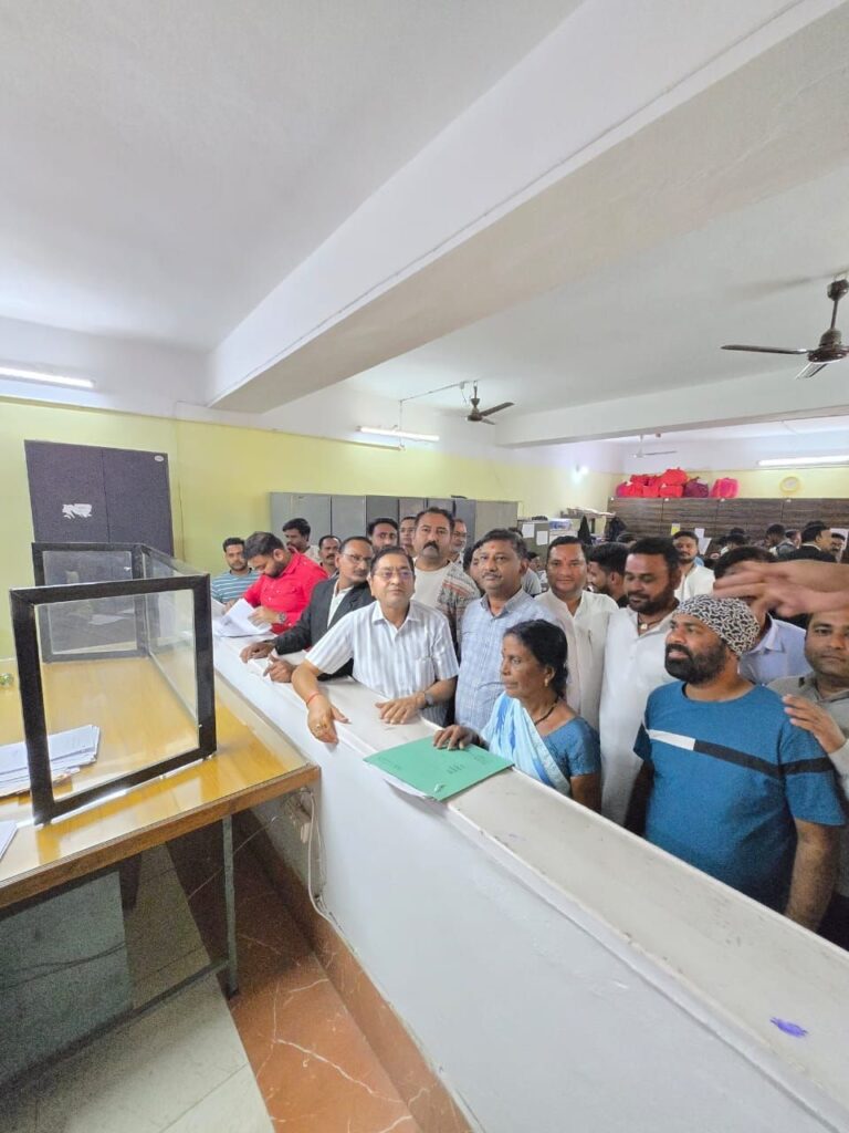 वरिष्ठ कांग्रेस नेता श्याम सुंदर अग्रवाल अपने समर्थको सहित नामांकन भरने पहुंचे अनुविभागीय अधिकारी कार्यालय.